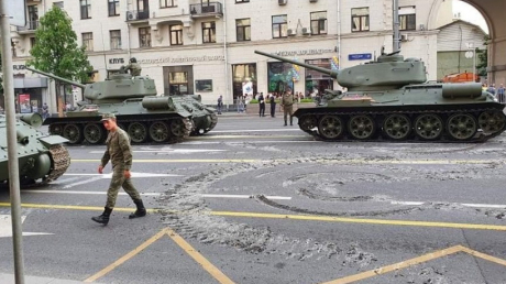 Инцидент случился во время репетиции Парада Победы, который должен состояться 24 июня: тогда центр города оказался перекрыт из-за подготовки к массовому мероприятию. На улицы выгнали военную технику как времен Второй мировой войны, так и современную.